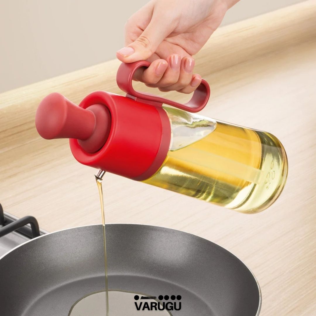 Con la Aceitera Push. Tendrás dos accesorios en uno: dispensador y brocha para dosificar el aceite fácilmente y sin chorrear. El envase de vidrio, con asa para sujetar tiene una capacidad de 450 ml, cuenta con una boquilla dispensadora cero derrames y una brocha que dispensa aceite al aplicar.