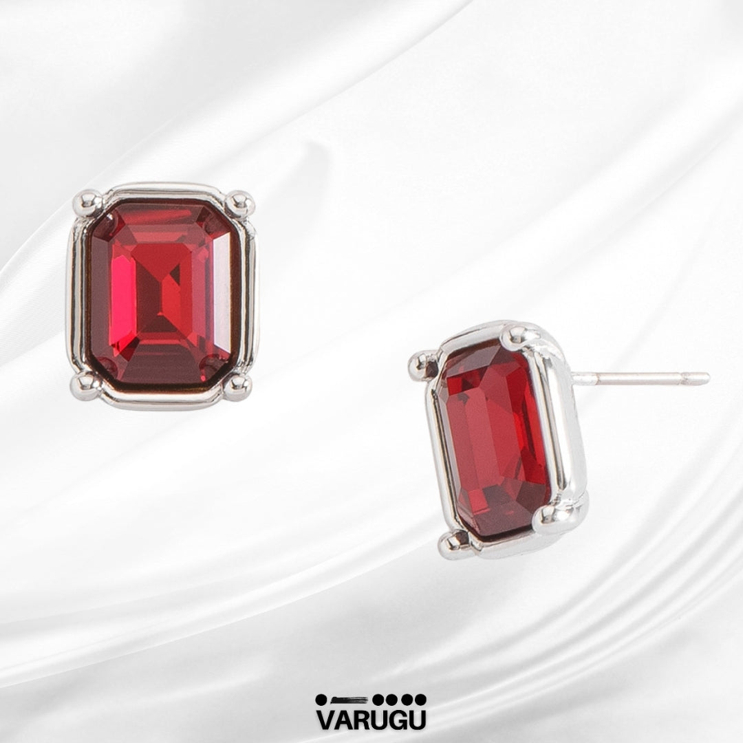 Aretes cuadrados plata con piedra roja