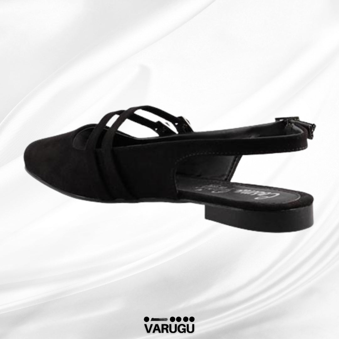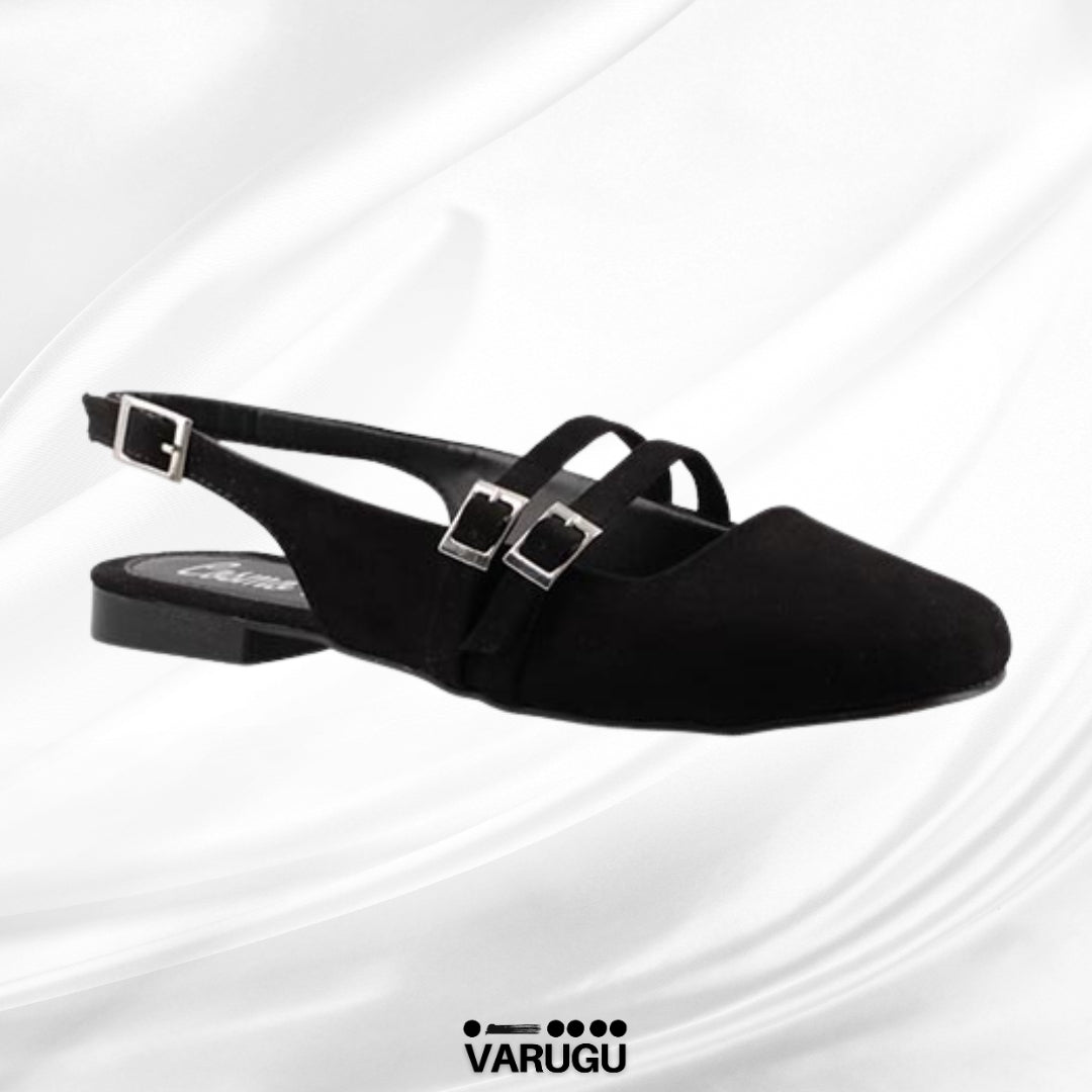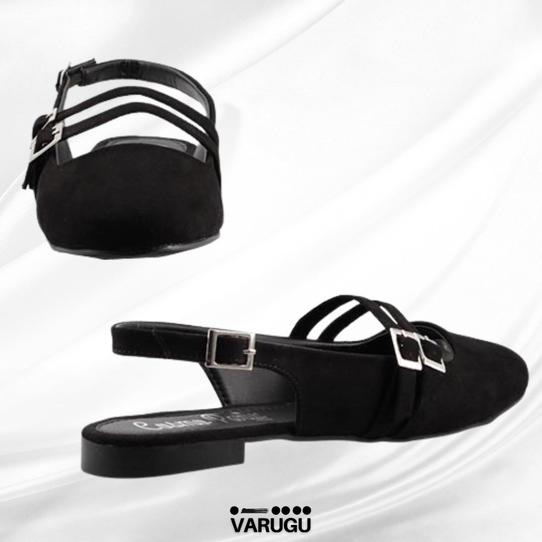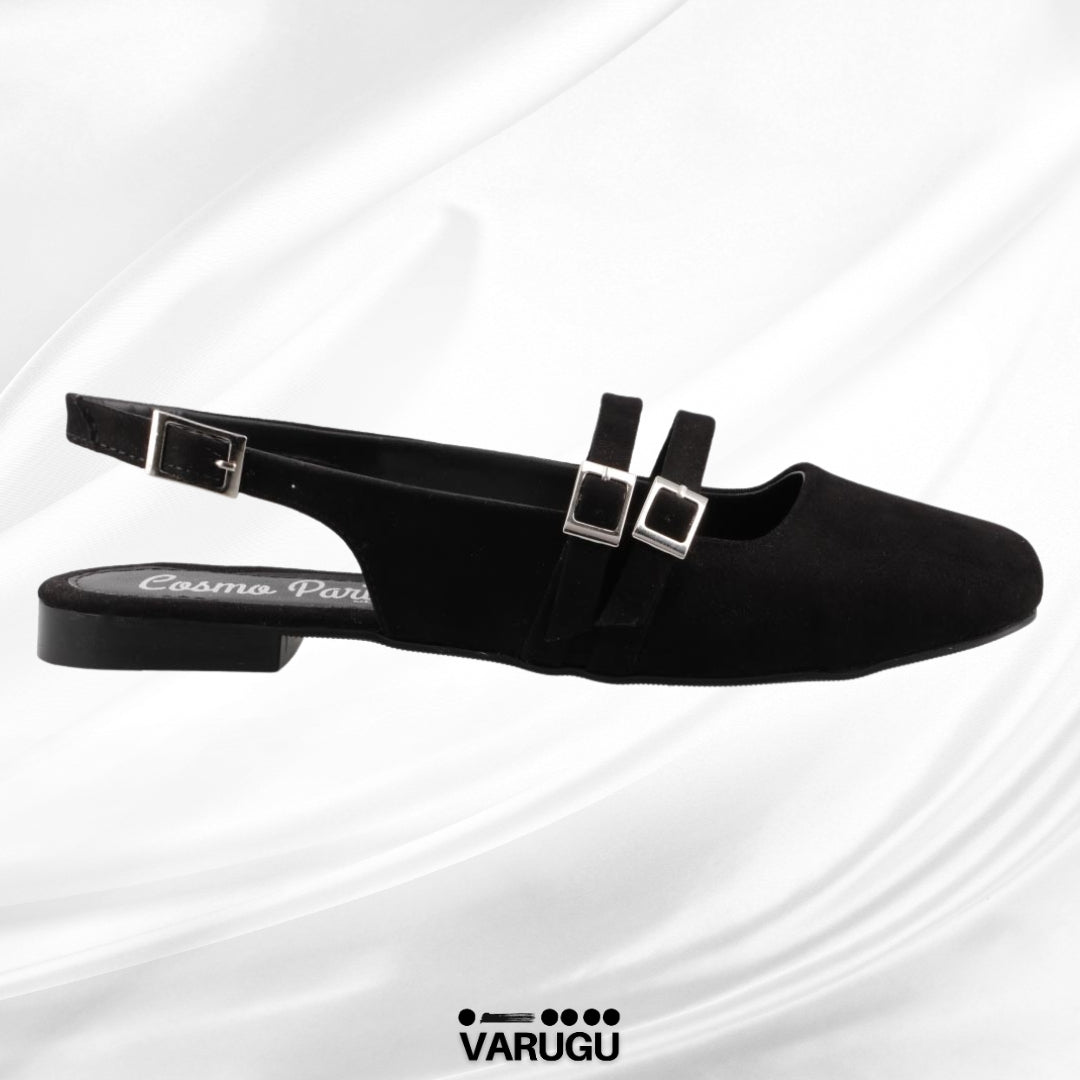 Flats para dama negros con triple correa